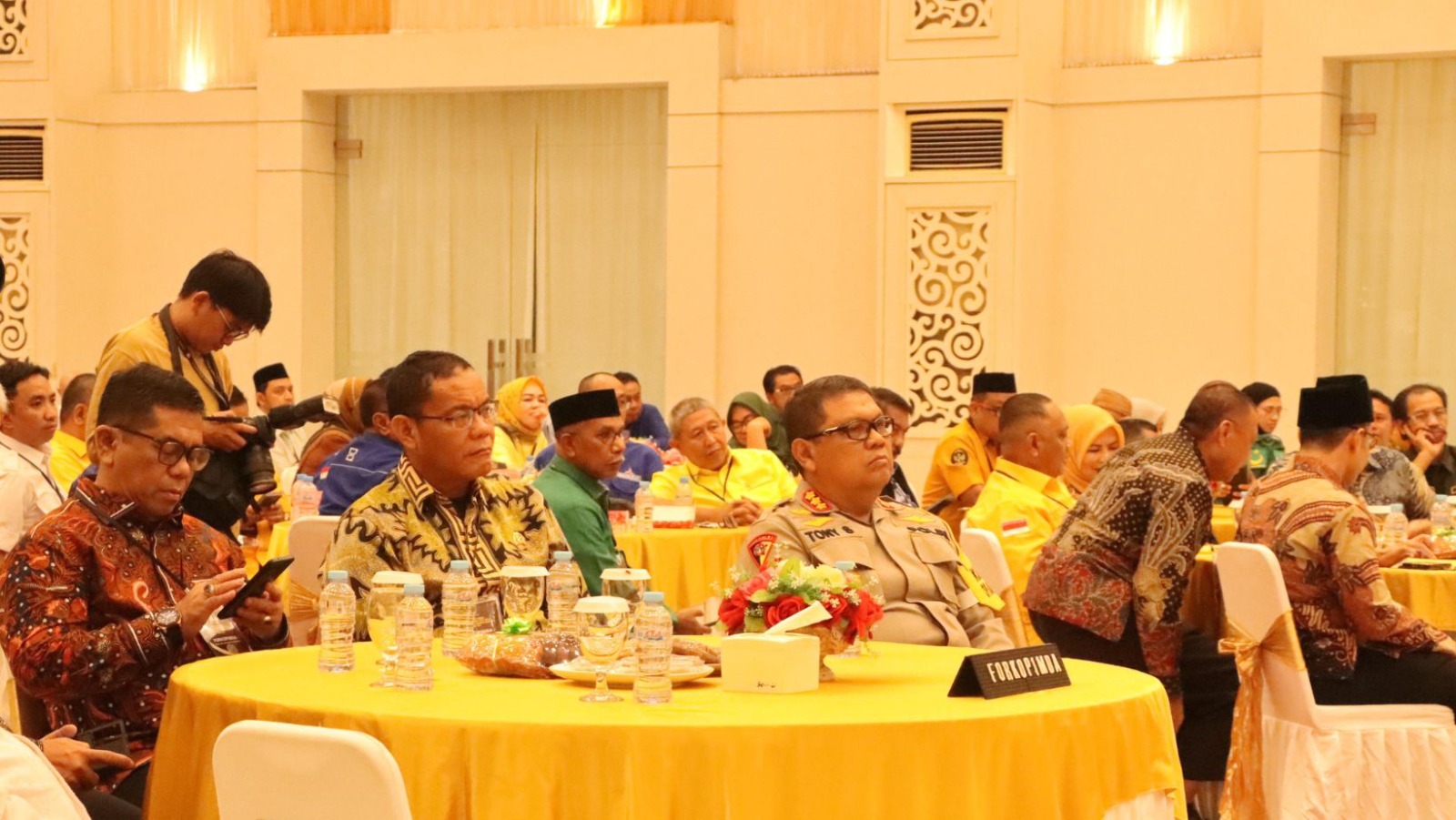 Gorontalo - Penetapan pasangan calon Gubernur dan Wakil Gubernur terpilih Pilkada Serentak 2024 berlangsung di Gedung Grand Palace Convention Center, Provinsi Gorontalo. Acara ini dihadiri Kepala Biro Operasi (Karo Ops) Polda Gorontalo, Kombes Pol. Drs. Tony E. P. Sinambela, M.Si, dalam suasana aman dan tertib.
