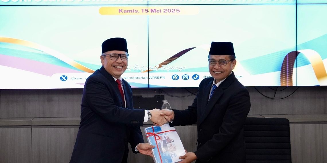 Jakarta - Kementerian Agraria dan Tata Ruang/Badan Pertanahan Nasional (ATR/BPN) menggelar serah terima jabatan (Sertijab) Sekretaris Jenderal (Sekjen) pada Kamis (15/05/2025), di Kantor Kementerian ATR/BPN, Jakarta. Sertijab ini dilakukan setelah Pelantikan Pejabat Struktural terlaksana dalam hari yang sama. Sekjen terlantik, Pudji Prasetijanto Hadi, pada momen ini menyampaikan harapannya agar jajaran ikut mendukungnya dalam menjalankan tugas baru di lingkup pertanahan dan tata ruang