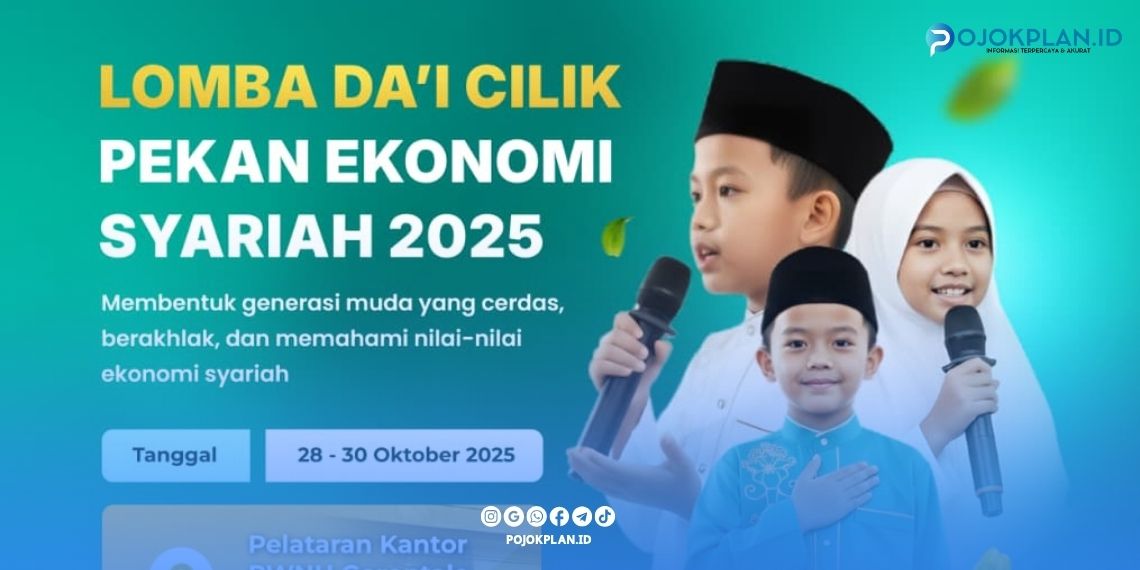 POJOKPLAN.ID, Gorontalo — Dalam rangkaian kegiatan Pekan Ekonomi Syariah (PES) 2025, Pengurus Wilayah Nahdlatul Ulama (PWNU) Gorontalo akan menggelar Lomba Da’i Cilik, sebuah ajang yang bertujuan untuk menumbuhkan semangat dakwah dan pemahaman nilai-nilai ekonomi syariah sejak usia dini.
