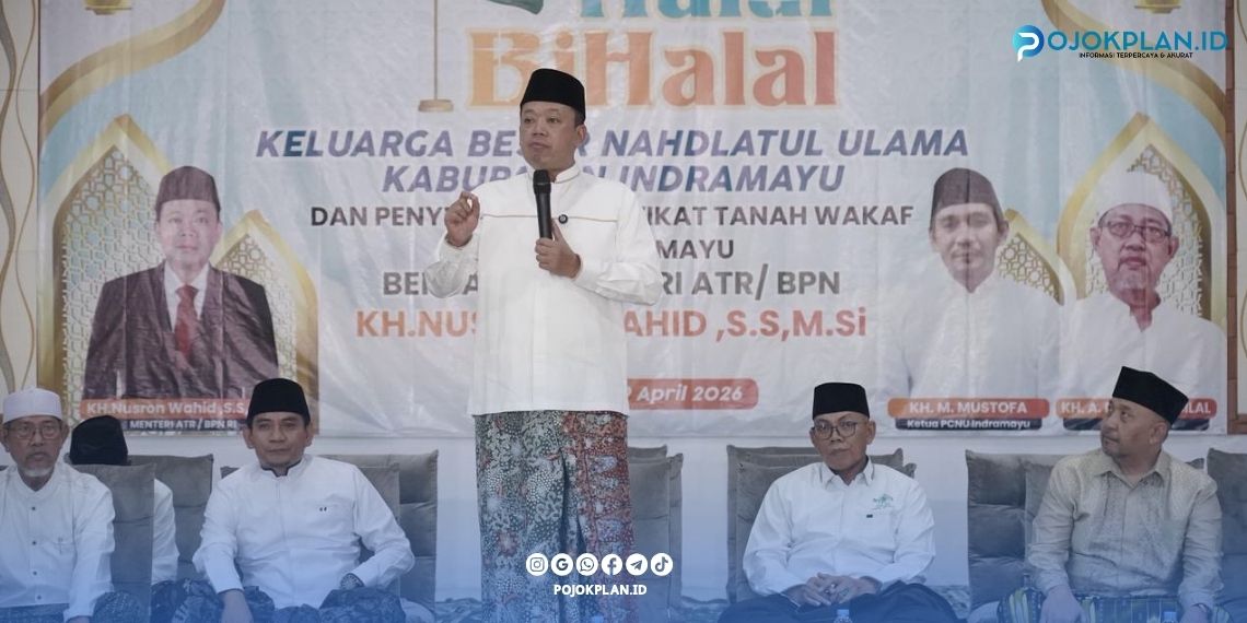 ​Indramayu – Menteri Agraria dan Tata Ruang/Kepala Badan Pertanahan Nasional (ATR/BPN), Nusron Wahid, mengajak Nahdlatul Ulama (NU) ikut berperan menyebarkan manfaat nyata bagi masyarakat. Pesan itu ia sampaikan langsung kepada anggota yang hadir dalam Halalbihalal dan Penyerahan Sertipikat Tanah Wakaf Pengurus Cabang Nahdlatul Ulama (PCNU) Indramayu, Minggu (19/04/2026).